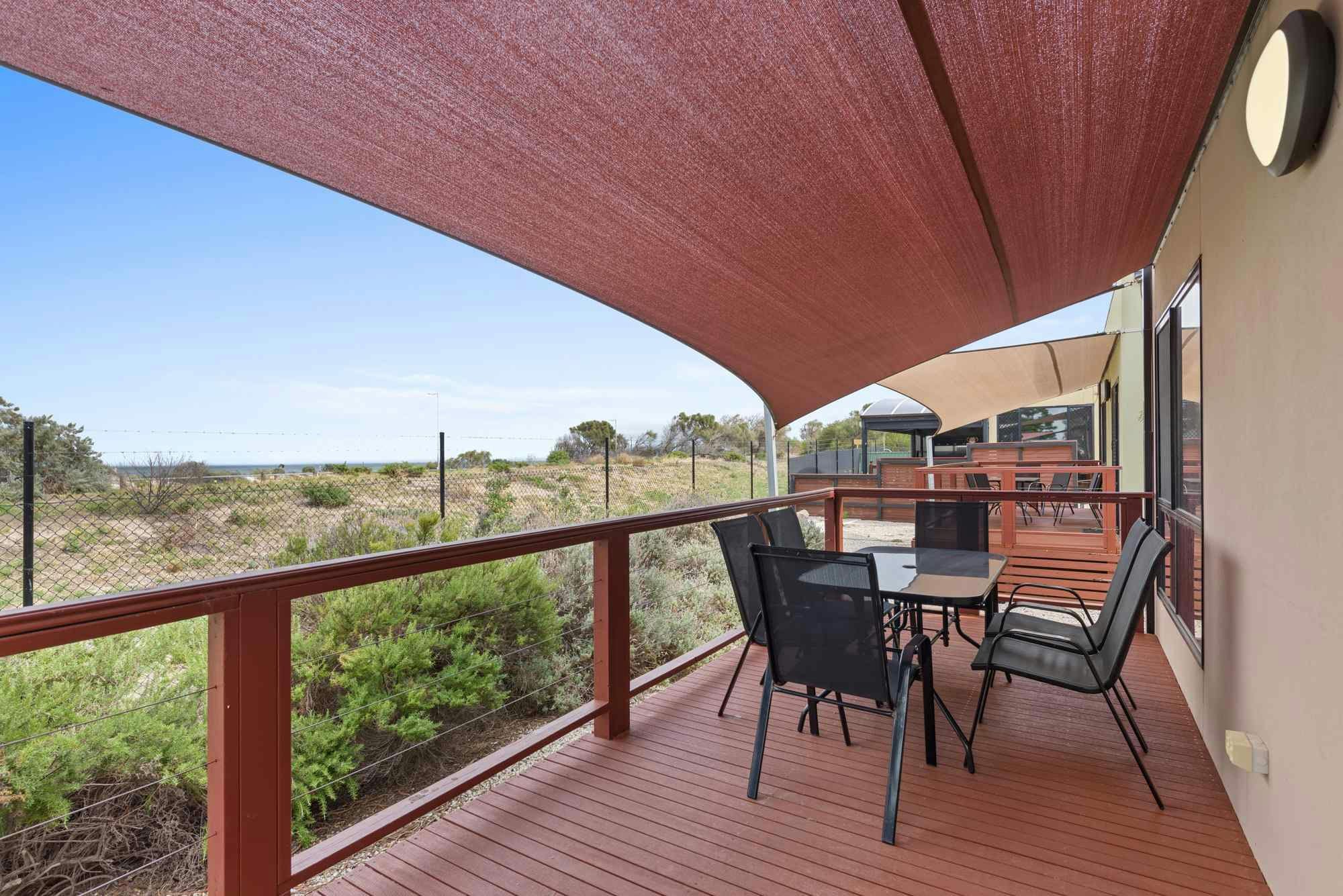Sip your morning coffee on your private deck while listening to the crash of waves over sand dunes 50m from your front door in your Deluxe 2-Bedroom Waterfront Cabin at Discovery Parks - Robe.