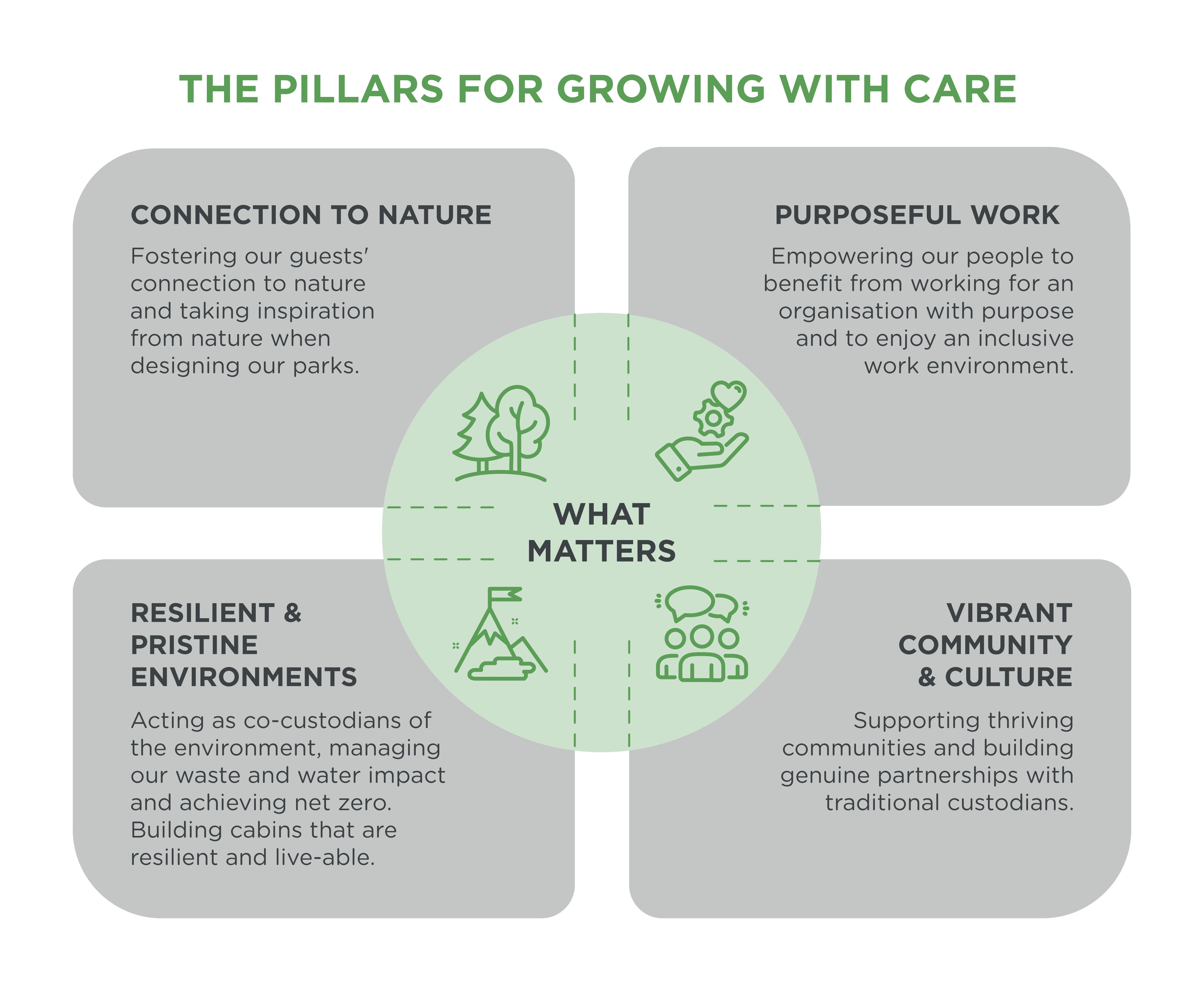 - Vibrant Community and Culture – be known for Indigenous inclusion at our culturally significant sites and for community impact across our network.