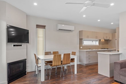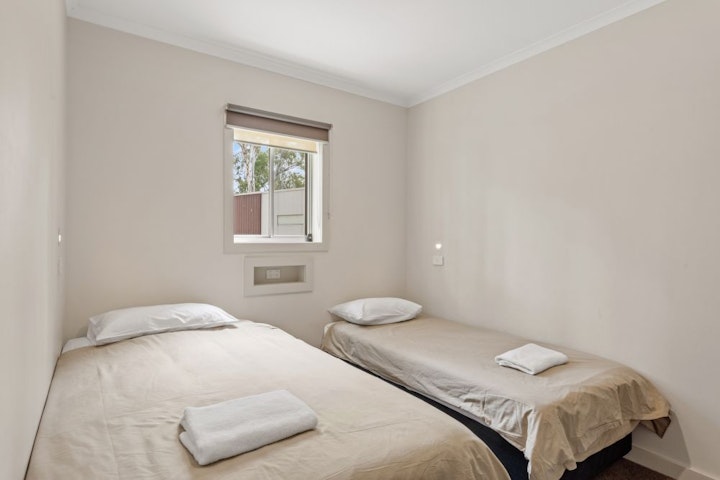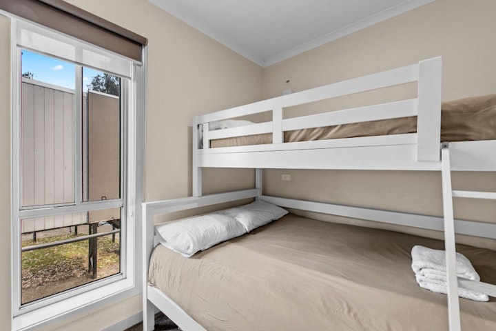 The Deluxe Cabin has three bedrooms with a lounge and dining area, ensuite and a full kitchen. Sleeps 7 (Maximum 7)