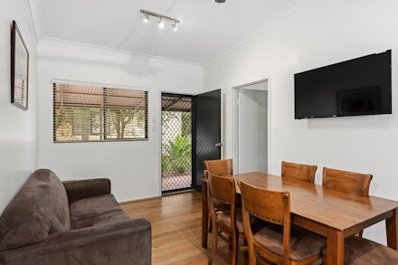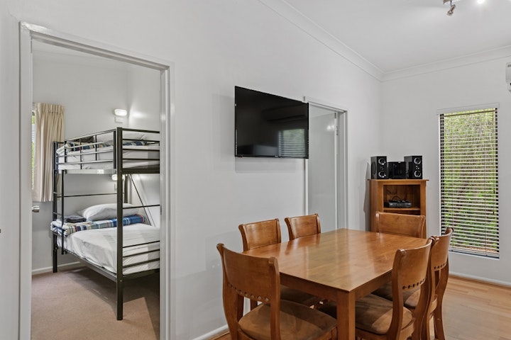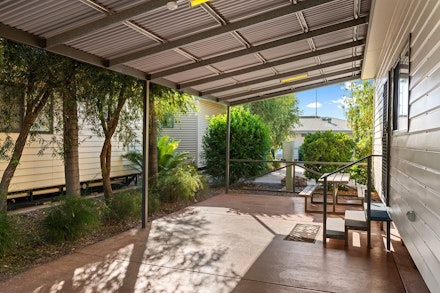 The only accommodation in the park with its own fenced courtyard and double carport, it’s sure to delight families with young children. Enjoy the beautiful weather sitting outside on the lounge or outdoor setting, whilst watching the kids play in a secure setting.