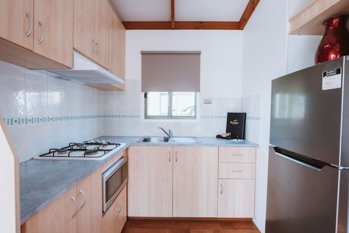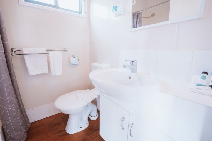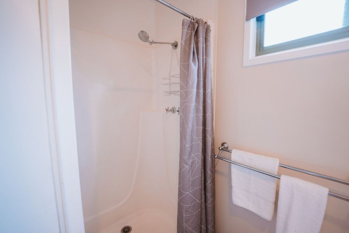 This open-plan cabin features a queen bed, double bed, and double sofa bed. Enjoy a self-contained kitchen with essential amenities, a cosy dining area, and a living space with a TV. The bathroom includes a shower, toilet, and vanity, and the cabin is air-conditioned for your comfort.