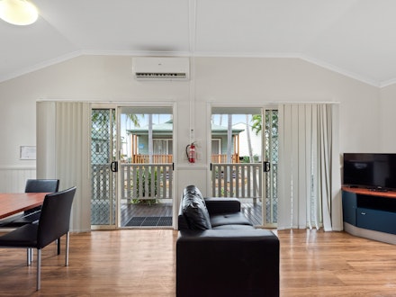 A home away from home! This two bedroom luxury villa is perfect for winding down after a big day out. Full kitchen, air-conditioning and a covered verandah to chill out on a warm night.