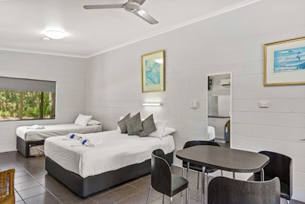 Our Standard 1 Bedroom Studio Cabins provide a comfortable accommodation option for singles or couples. The units are scattered throughout the park, some being quiet & secluded and others being closer to the swimming pool and barbecue areas.