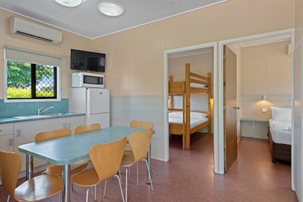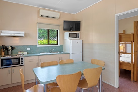Close to all of the main park facilities, our Standard 2 Bedroom Cabins offer great views of the beautiful park grounds. The cabin has a Queen Bed in the main bedroom and a Double Bunk Bed in the second bedroom.