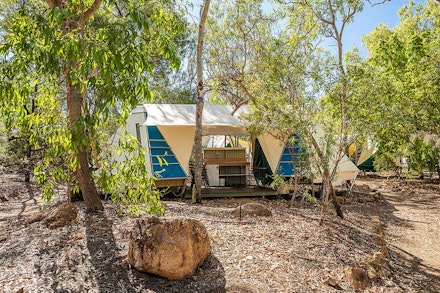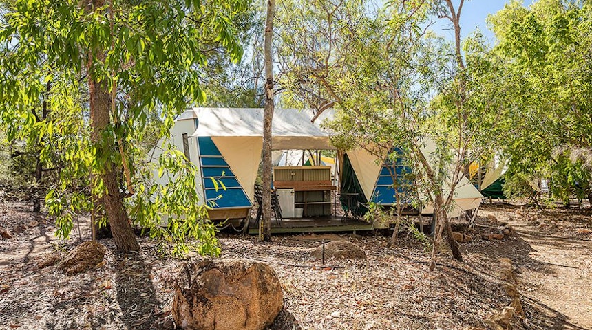 Camp in the Australian outback without ever having to rough it. Large enough to stand in and comfortable enough for every member for the family, these permanently erected tents have proper bedding and are close to the central amenities block.
