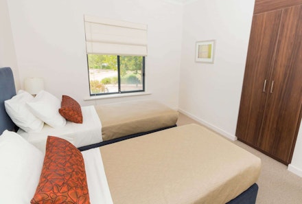 The apartment sleeps up to four across two bedrooms (1 x King Bed and 2 x Single Beds) and is equipped with two flat-screen TVs, a DVD player, and tea and coffee making facilities. Room service is available on request. Please note upper-level apartments are accessed by stairs.