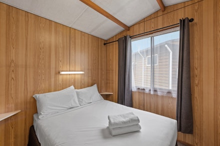 Affordable and cosy, these cabins are perfect for 4 people. There’s a separate bathroom and toilet, with a fully equipped kitchen.