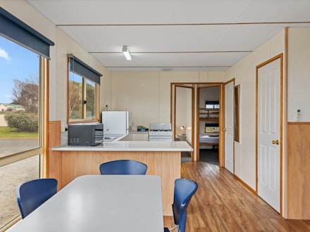A spacious, comfortable home away from home, ideal for a family of 6 or small group. Bedrooms separate from lounge/dining for privacy and quiet time in the evening. With heating and cooling, a relaxed living area and TV, you can enjoy your evening in comfort no matter what the weather.