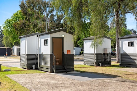 The Ensuite Powered Site has a shower, toilet and hand basin for the exclusive use of the site. Each site has its own individual power, water and sullage connections. All of the sites are asphalt and unable to peg down into. You must have your own caravan or motor home. The Ensuite Powered Site not available online. Please contact us directly to make a booking.