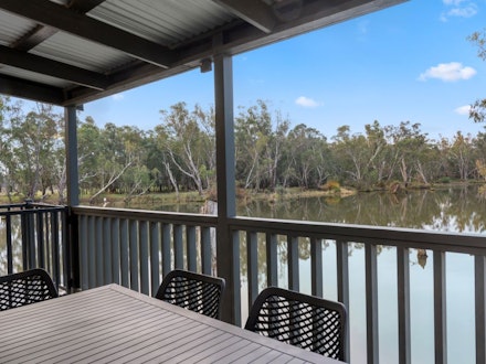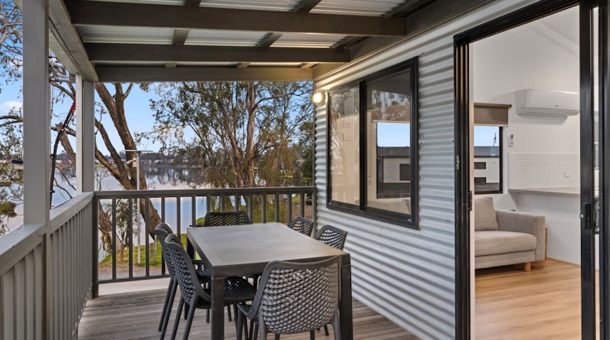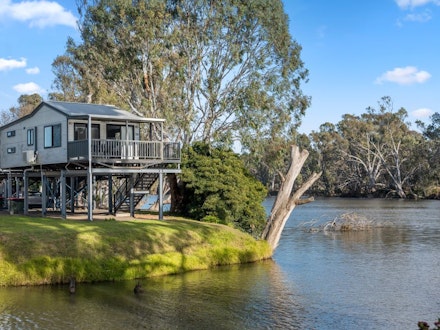 The Superior Riverside Cabin is raised 2.4m with 18 stairs to access the cabin, has two bedrooms with a lounge and dining area, bathroom and a full kitchen. With great views of the Goulburn River.