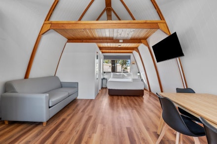 You’ll never forget this quaint 'A-framed’ cabin. It sleeps up to 4 people. The open plan cabin has everything you’ll need in the kitchen (and there’s air-conditioning (heating/cooling) and all linen too!