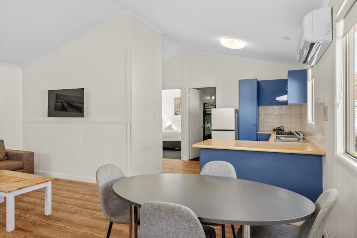 The Superior 2 Bedroom Cabin has two bedrooms with a lounge and dining area, ensuite, kitchen and parking for one vehicle.