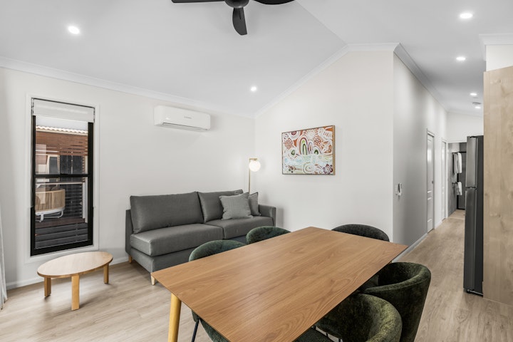 A two-bedroom cabin with a view? Yes please. Equipped with a timber balcony, modern open-plan living, and bunk beds for the young (or young at heart). Ceiling fans included, to give you that tropical breeze feeling.