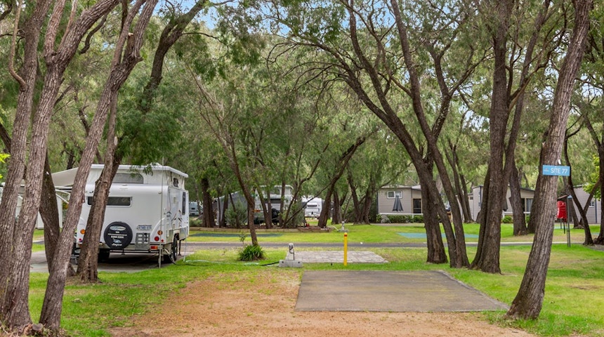 The perfect spot to setup camp and relax on the shores of Geographe Bay! With over 80 powered sites, our spaces are suitable for tents, caravans and everything in between, some with grass or concrete slabs. Relax under the shade of mature peppermint trees and enjoy the peaceful surroundings. These powered sites cater for vans that are over 24ft and up to 26ft.