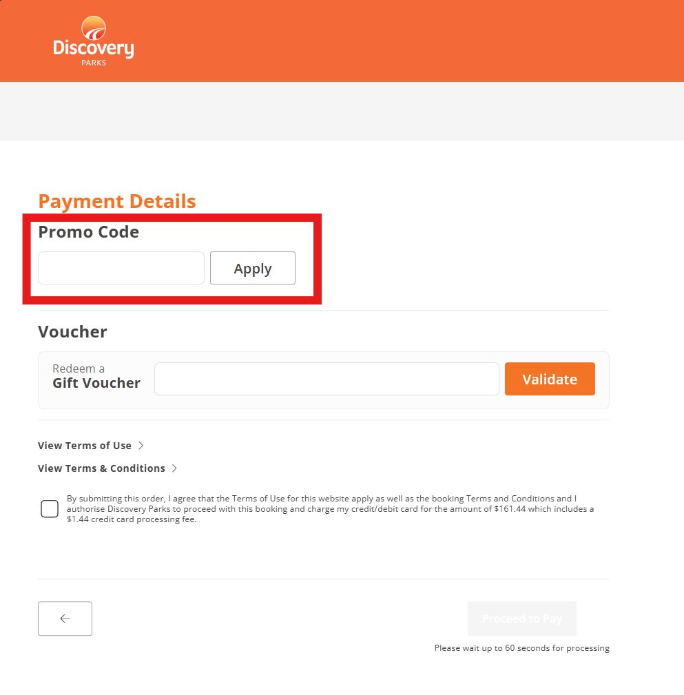 Please note: bookings must be made via the Discovery Parks website. Terms and conditions apply (see below). Please refer to the following instructions (see below) on how to book using your voucher number and promo code.