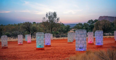 Light-Towers by night proves that our lives on earth are teeming with the magic of unexplainable things. Immerse yourself in Munro''s unique display. An amazing addition to any Red Centre trip.