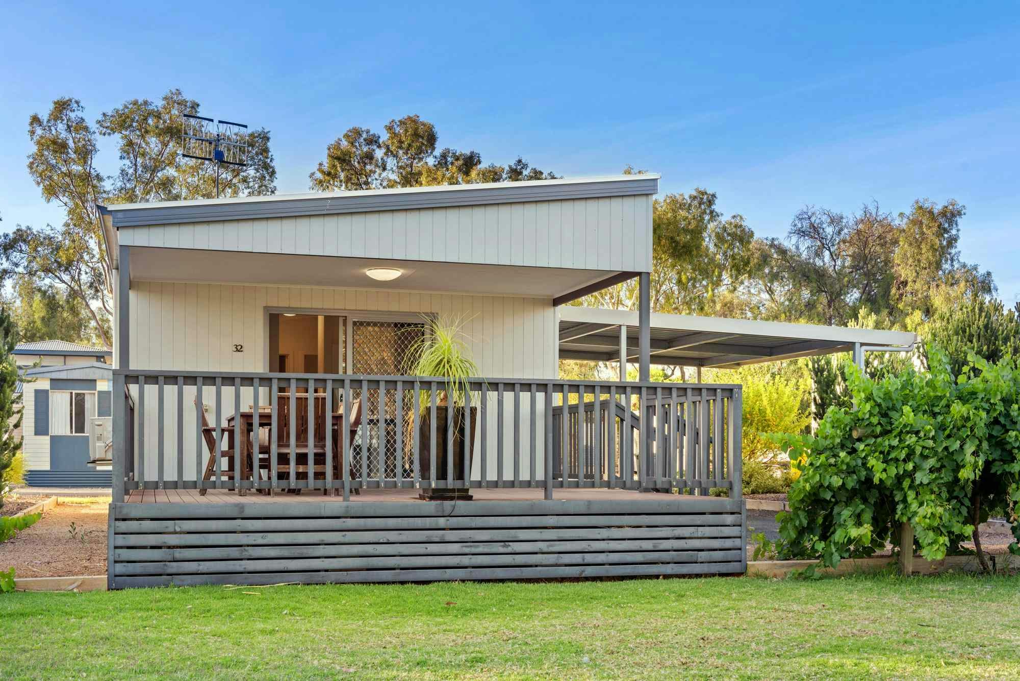Also available are the Deluxe 2 Bedroom Cabin, which sleeps 6 and the Standard 1 Bedroom Cabin which sleeps 2. Lounge around on your private verandah included in both of these, as well as all of the other home-away-from-home amenities and start your Riverland adventure!