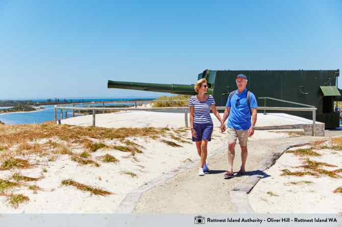 For a Rottnest Island history lesson, take the scenic train ride from the Settlement Railway Station to Oliver Hill and head underground! Then take the guided or self-guided tour and learn about Rottnest’s involvement in World War II through a maze of eerie underground tunnels and recently restored artillery guns.